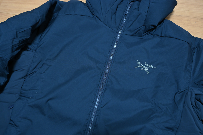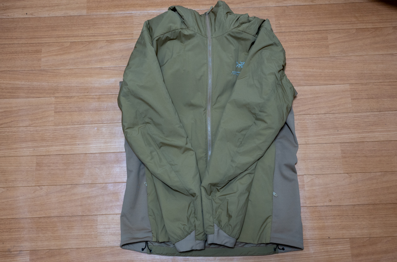 全体像を見て分かる通り,アトムSVとの大きな違いの一つは,サイドパネルがフリース素材になっていることだ.このおかげで通気性が上がっており,より行動中に熱を逃がしてくれる.また,中綿素材の量もかなり異なっている用で,アトムSVを触ったあとにアトムを触るとペラペラに感じる.アトムSVとは使い分けが重要だ.
