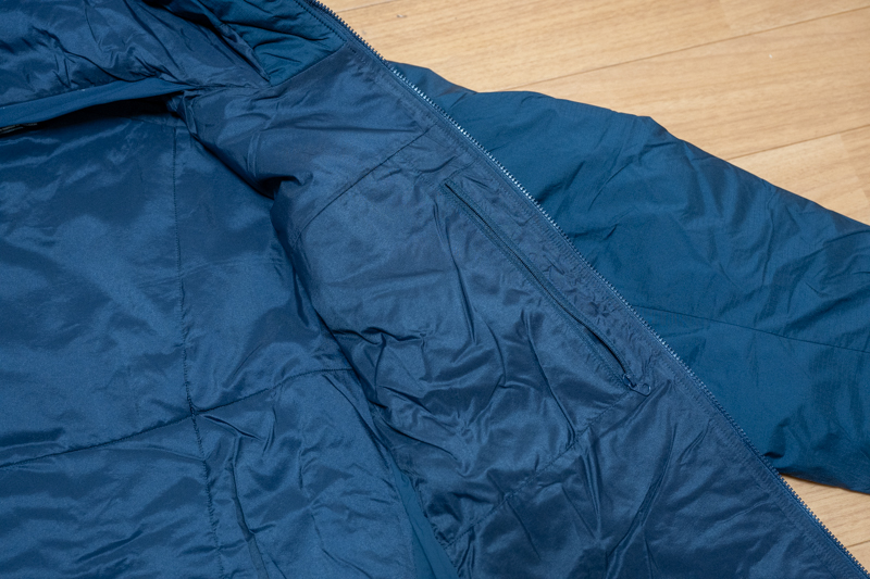裏地はさわり心地の良いナイロン素材で,ここは通常のアトムと同様だ.この裏地素材のお陰で着心地がよく長時間着用していても疲れない.また,通常のアトム同様左側に内ポケットがある.